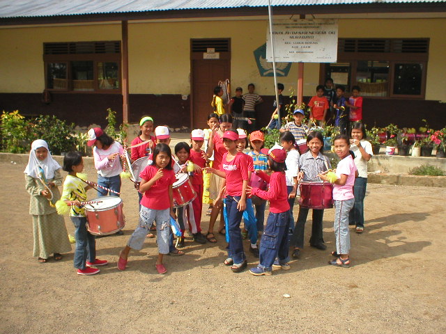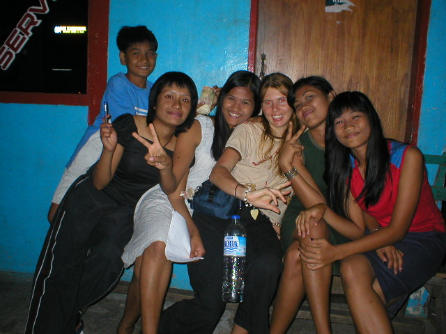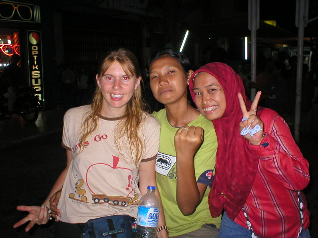 Padang. Girls outside a building having their photo taken with Joanne. P1100581.JPG