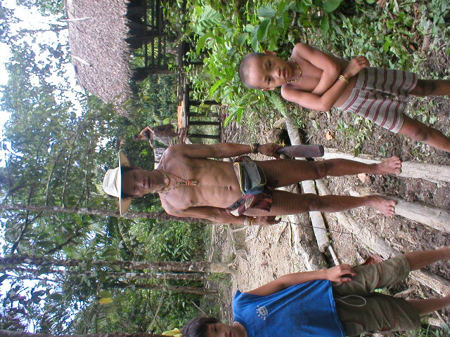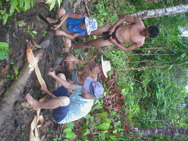 We went out into the jungle to make a loin cloth. Notice the footware.