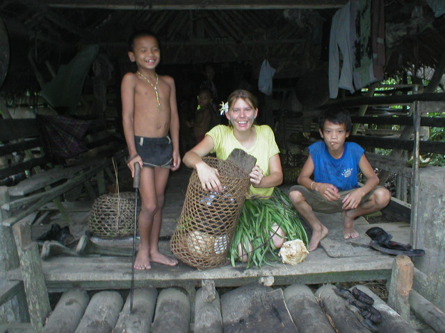 This is Joanne back from the jungle. She just wore the grass skirt for the photo. The mud, however, is from a mud fight she had with the kids. P1140017.JPG